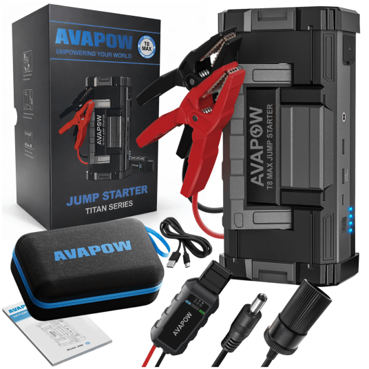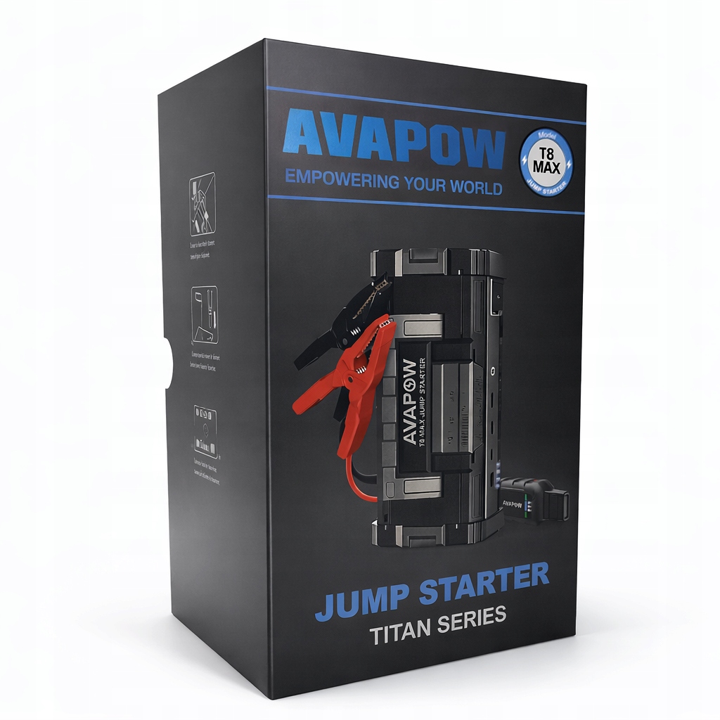 Kompaktowe i ultramocne urządzenie rozruchowe AVAPOW T8 Max poradzi sobie nawet z całkowicie rozładowanym akumulatorem. Z prądem szczytowym 6000A bez problemu uruchomi samochody osobowe,