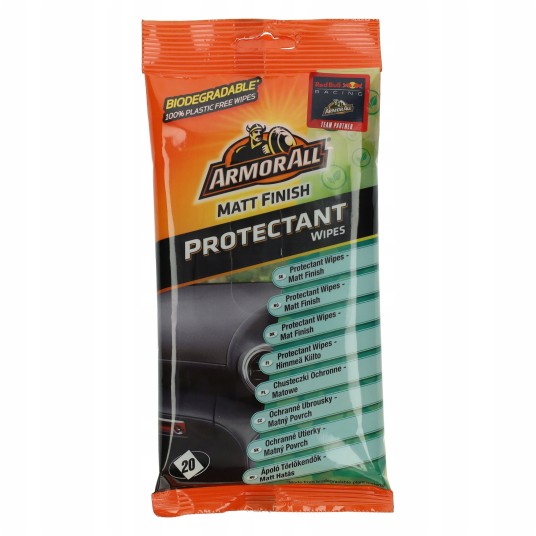 Matowe chusteczki ArmorAll czyszczą i chronią wnętrze bez dodawania połysku. Usuwają kurz i brud, zabezpieczają przed UV i spowalniają ponowne osadzanie się zanieczyszczeń. Idealne do plastików i winylu, gdy chcesz uzyskać naturalny efekt.