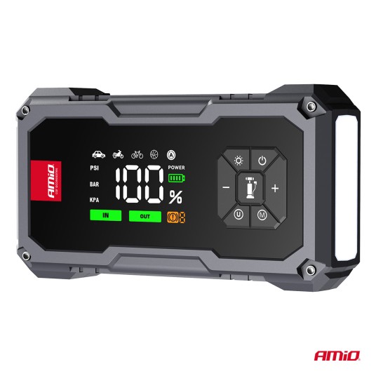 Urządzenie rozruchowe 4w1 booster powerbank kompresor latarka LED 12V 7,2Ah 600A AMIO-04674