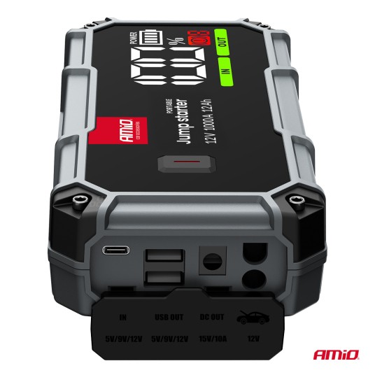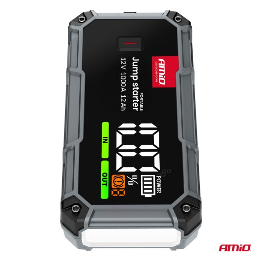 Urządzenie rozruchowe AMiO 3w1 to nowoczesny i wydajny sprzęt, który łączy funkcję boostera rozruchowego, powerbanku oraz latarki LED. Wyposażone w czytelny wyświetlacz LCD, zapewnia pełną kontrolę nad pracą urządzenia i stanem naładowania. Dzięki dużej pojemności akumulatora i wysokiemu prądowi rozruchowemu doskonale sprawdza się w zastosowaniach profesjonalnych oraz w codziennym użytkowaniu przez kierowców.