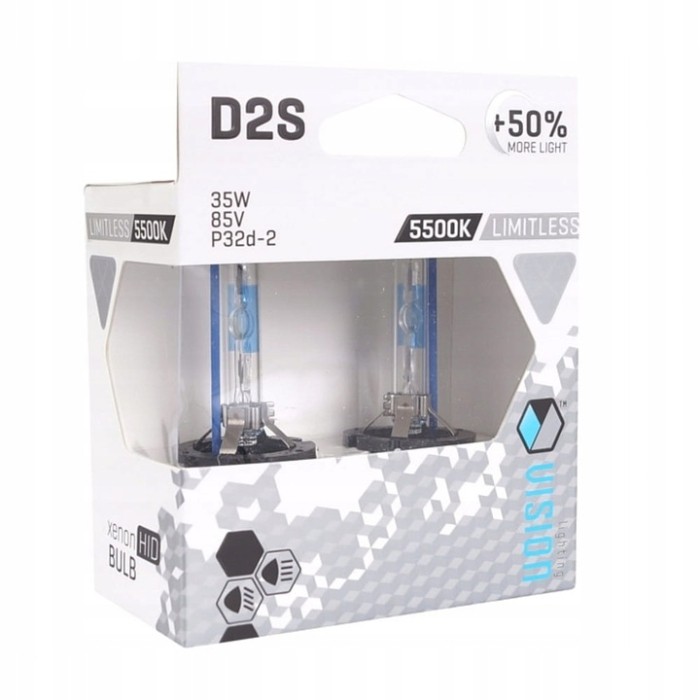 ŻARÓWKI KSENONOWE VISION D2S 5500K 85V35W P32D-2 +50% LIMITLESS WHITE, 2 SZT.