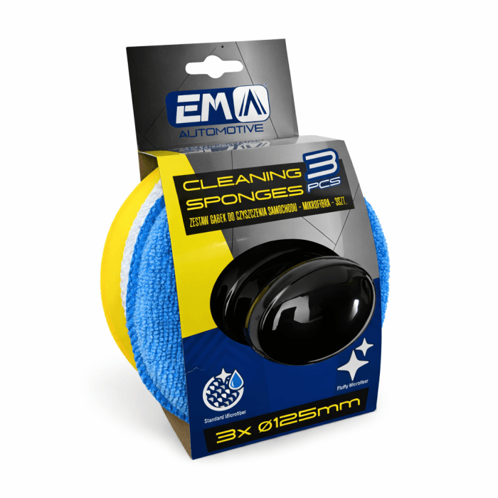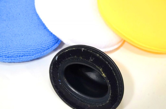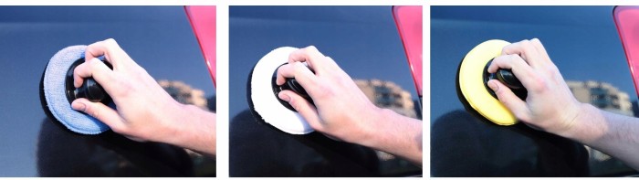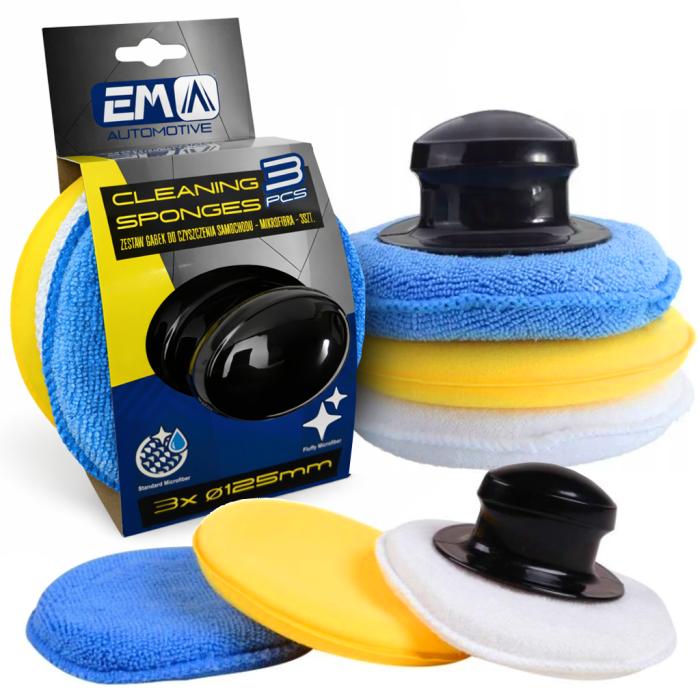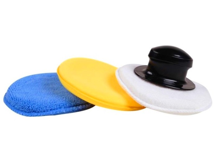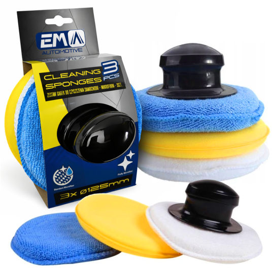 Zestaw profesjonalnych aplikatorów z mikrofibry do pielęgnacji samochodów.