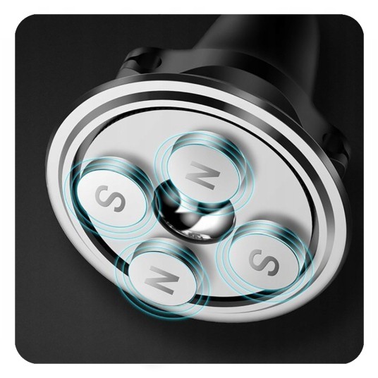 Uchwyt został wyposażony w 4 potężne magnesy rubidowe o wysokiej wydajności wbudowane w głowicę mocującą - znacznie mocniejsze niż zwykłe, dzięki czemu telefon pozostaje bezpieczny podczas jazdy nawet na bardzo nierównej i wyboistej drodze.